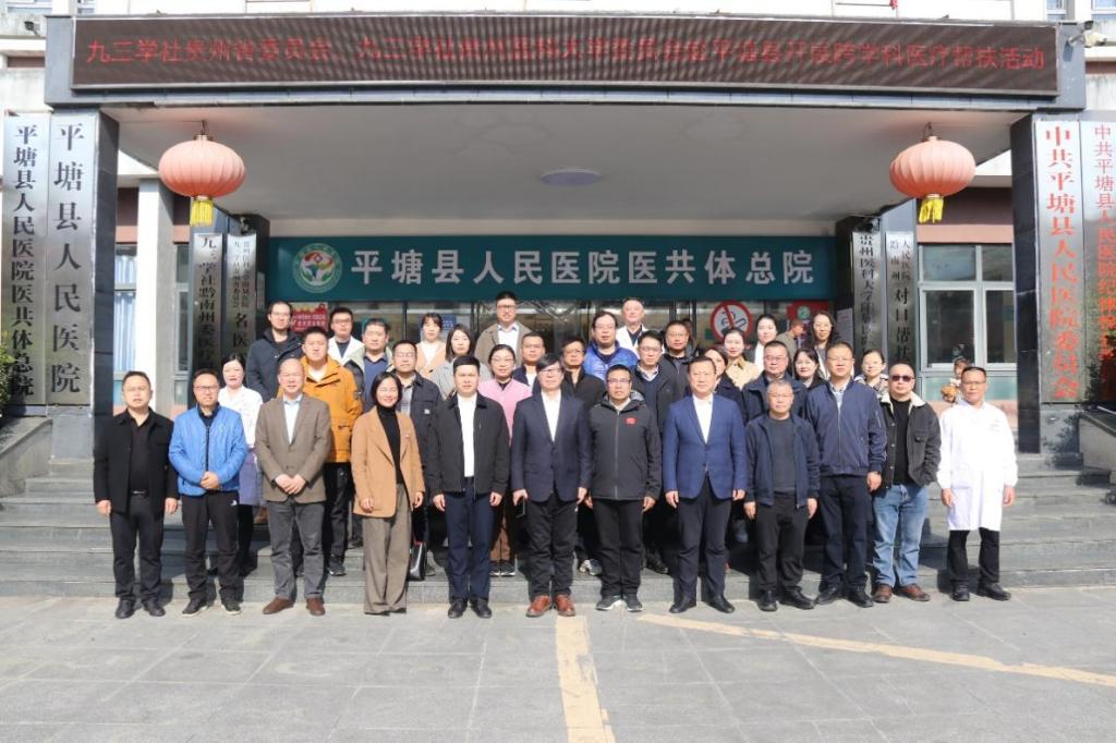 为响应国家乡村振兴战略,提升基层医疗服务能力,11月23日,九三学社贵州省委员会携手九三学社贵州医科大学委员会组织22名医疗专家,赴平塘县人民医院开展跨学科医疗帮扶活动。