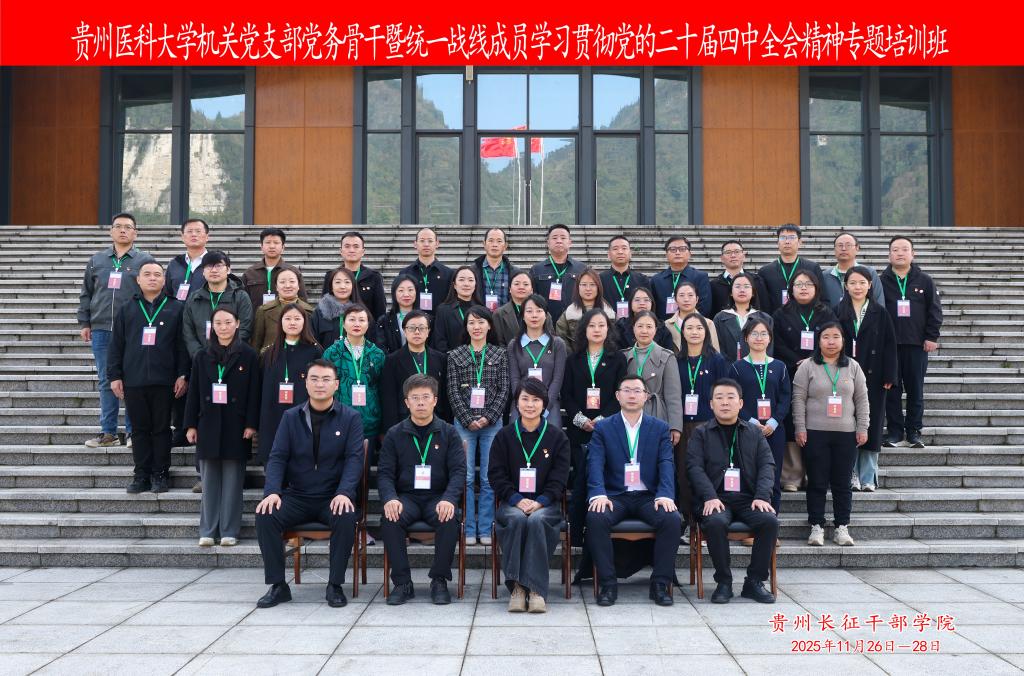 为学习贯彻党的二十届四中全会和贵州省委十三届八次全会精神,深化党外人士政治认同,提升履职能力,强化使命担当,11月26日至28日,学校机关党委党务骨干暨统一战线成员学习贯彻党的二十届四中全会精神专题培训班在贵州长征干部学院开班。